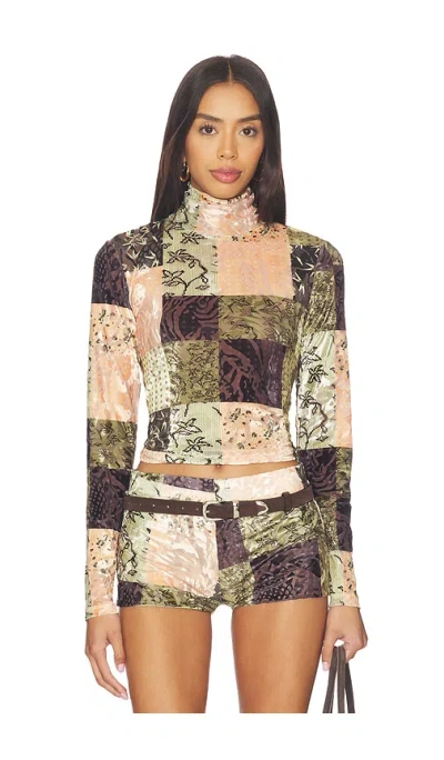 SIEDRES Cody Top in Brown, Green. - size S (also in L, M) SIEDRES Cody Top in Brown, Green. - size S (also in L, M) 100% polyester. Made in Turkey. Machine wash. Pull-on styling. Item not sold as set. Mesh textile with velour jacquard finish. SRER-WS64. WRS26TP08.