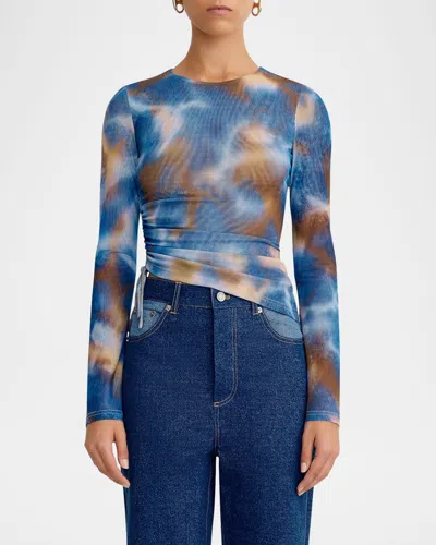 Drew Printed Mesh Drawstring Top In Dipped Cobalt