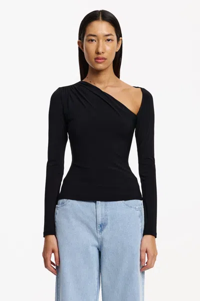 The June Long Sleeve Top in Black showcases Significant Other's signature approach to sculptural basics, reimagined in a refined knit jersey. Defined by its asymmetrical neckline with shoulder gathering, this piece lends modern sophistication to the foundational wardrobe. An opaque, fully lined bodice ensures is complemented by unlined sleeves to keep the silhouette visually light‚ ideal for polished day-to-evening styling.. PRODUCT DETAILS. - Long sleeve knit top- Sculpted asymmetrical neckline- Gathered shoulder detail- Pullover silhouette with no closures- Opaque bodice with lining; unlined sleeves- Crafted in stretch jersey for a refined fit. Model is 177cm / 5'9.5" wearing an AU 8 / US 4. CompositionMain: 94% Polyester, 6% ElastaneLining: 95% Polyester, 5% Elastane.