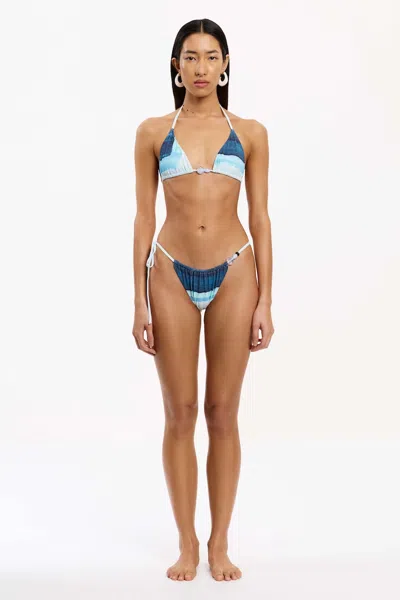 The Karah Triangle Top in Canvas Print channels refined poolside style with its sculptural lines and print. Defined by its adjustable neckline and back ties, this swim top features a resin bead accent on the front strap for a unique touch. A placement print adds a level of fun, creating an ideal swim style.. PRODUCT DETAILS. - Swim bikini top- Triangle silhouette- Placement canvas print- Adjustable neck and back ties- Resin bead detail at front strap- Fully lined, opaque- Knit fabricationModel is 177cm / 5'9.5" wearing an AU 8 / US 4. Composition Main: 80% Nylon, 20% Elastane Lining: 88% Polyester, 12% Elastane.