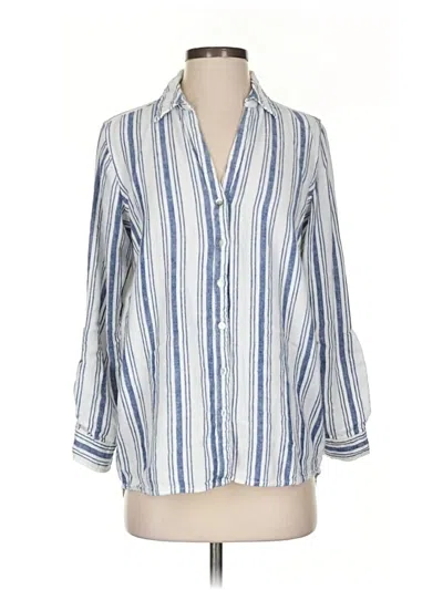 Sigrid Olsen 3/4 Sleeve Button Down Shirt, Size: X-Small. Item Details: Blue, Stripes Pattern, Collared Neckline, Women's Tops, Linen/Rayon