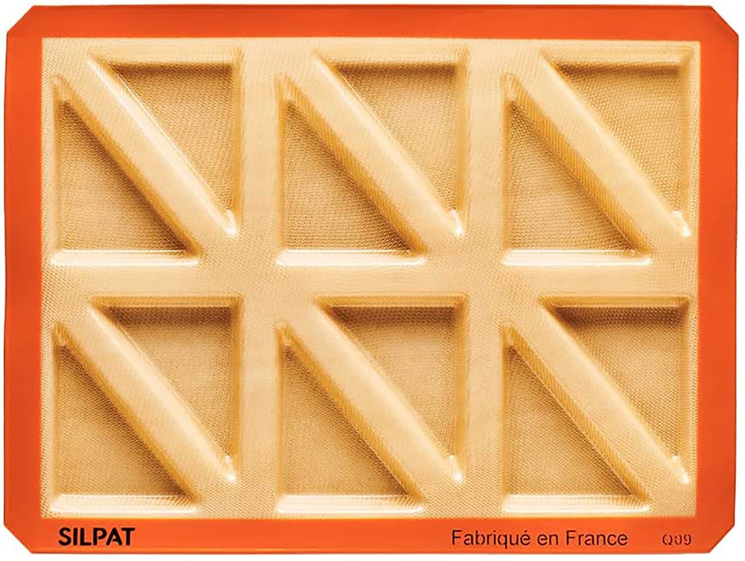 Silpat baking molds are perfect for baking just about any delicacy you want. The baking molds are made of non-stick silicone which means youll spend less time cleaning and more time enjoying your baking creations. Silpat replaces the need for butter, grease, oils, and sprays. 12 triangular mold wells will allow you to get the most out of your recipes Non-stick coating Durable, long lasting and easy to clean Can be used in the freezer, refrigerator, oven, and microwave