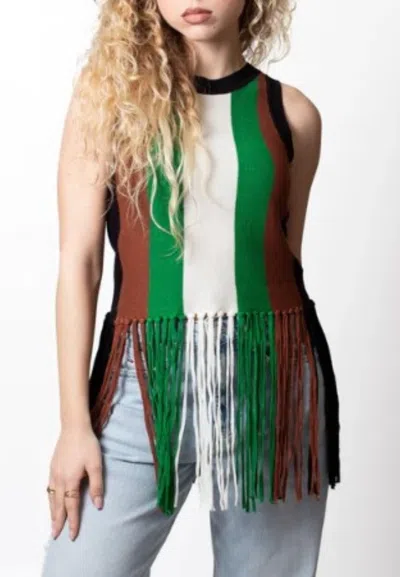 TOP SILVIAN HEACHTop Silvian Heach multicolore, unica variante. Texture in maglia, girocollo, senza maniche, design a strisce, girocollo e giromanica in costina e frange applicate sul fondo.COMPOSIZIONE: 60% acrilica, 28% tencel, 12% linoLa modella e alta 1.77 cm ed indossa la S