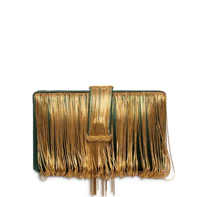 Hard structured box clutch, gold metal chains stitched as hanging tassels, braided belt magnetic closure, interior velvet lining Cocktail Hour Has Officially Started And All We Can Say Is ”Cheers Exquisite black silk fabric with a braided flap and gold metal hanging chains