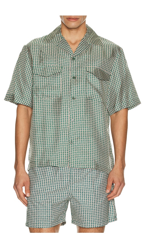 SIMKHAI Clarke Printed Silk Shirt in Green 100% silk. Dry clean only. Front button closure. Dual chest pockets. Lightweight satin fabric. JSIM-MS27. 126-2155-MEN-PRINT. About the designer: New York born and raised designer, Jonathan Simkhai started his fashion fascination at the early age of 14 where he built his buying skills working at a local retail clothing store. He took his love for the industry and went on to attend Parsons and FIT. His self titled women's collection debuted in 2010 showcasing the cross between genders. Jonathan's design aesthetic is menswear-inspired pieces incorporated into feminine silhouettes that remain classic and sophisticated for the modern, cosmopolitan woman.