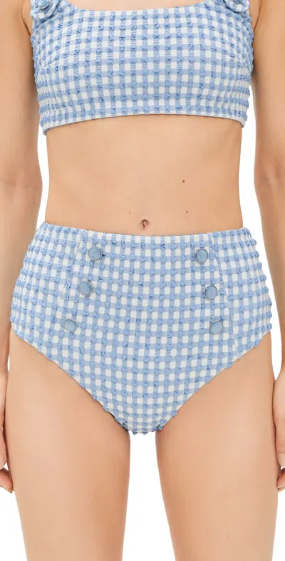 SIMKHAI Ginger Button Front High Waisted Bikini Bottoms Blue Hydrangea Gingham