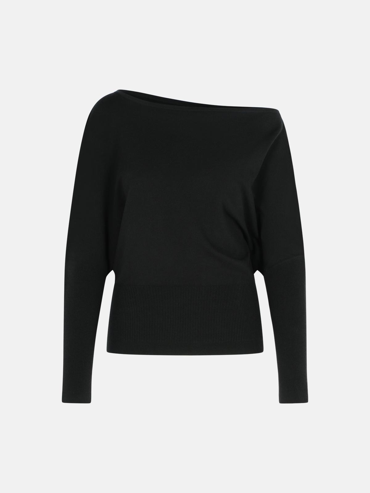 Asymmetrical neckline, comfortable fit, draped, ribbed sleeves and hem