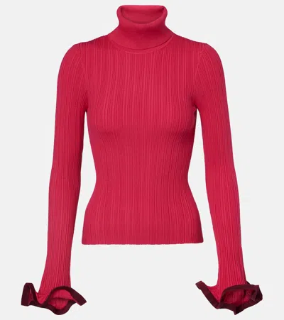SIMKHAI Lola Ruffled Turtleneck Sweater In Pink