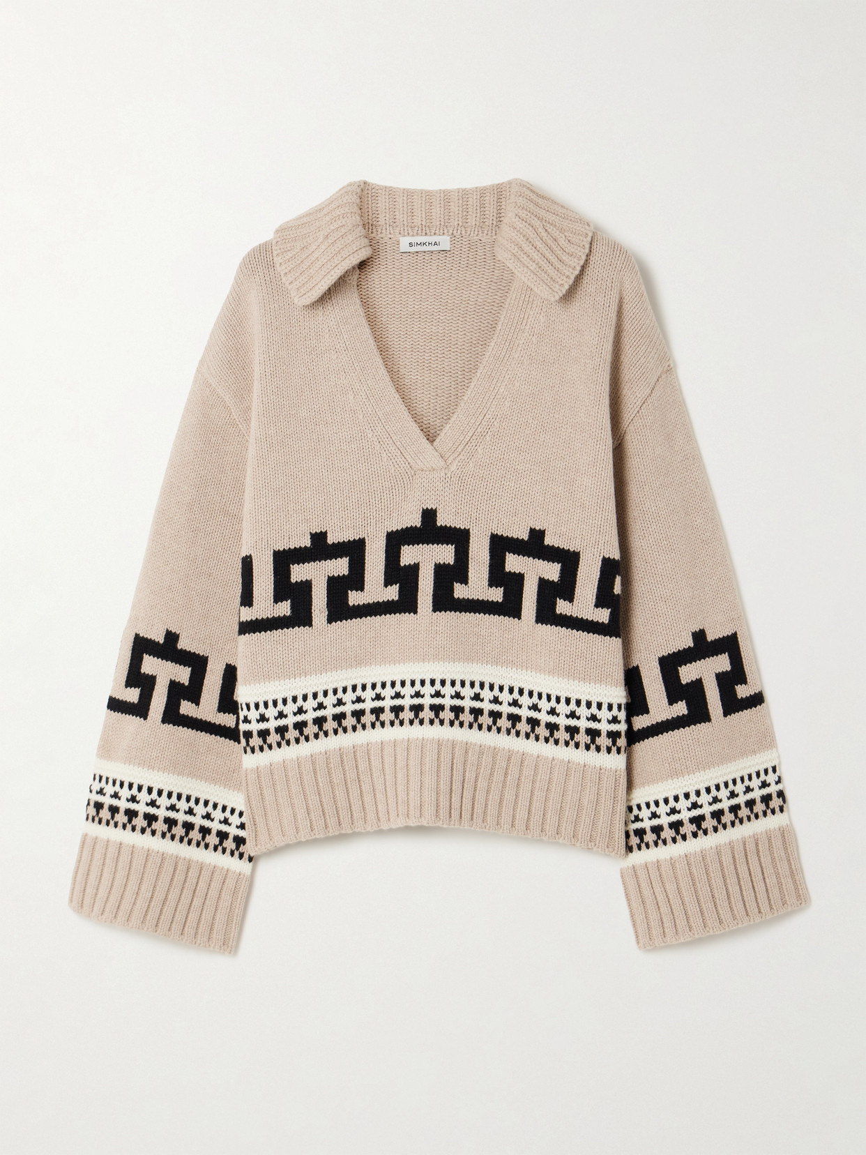 SIMKHAI O'reilly Intarsia Wool And Cashmere-blend Sweater In Brown