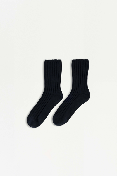COTTON CASHMERE EDIT. Ribbed Socks in Midnight. Designed for ultimate comfort, these soft socks ensure warmth, making them a perfect choice for daily wear or special occasions.