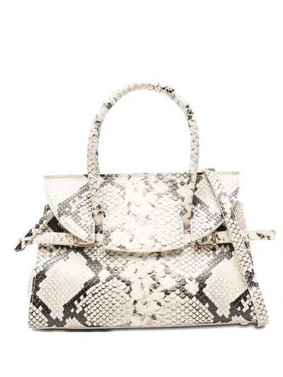 natural beige snakeskin print top handles detachable strap gold-tone hardware flap top buckle fastening