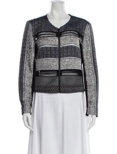 Jonathan Simkhai Evening Jacket Blue Tweed Pattern Eyelet Trim & Collarless Zip Closure Fit: Jackets by Jonathan Simkhai typically fit true to size. | Jonathan Simkhai Tweed Pattern Evening Jacket in Blue, Women's L