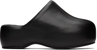 Padded buffed faux-leather slip-on loafers in black. · Logo patch at padded footbed · Buffed faux-leather lining · Covered platform midsole · Textured rubber outsole · Platform: H2.25 in Supplier color: Black