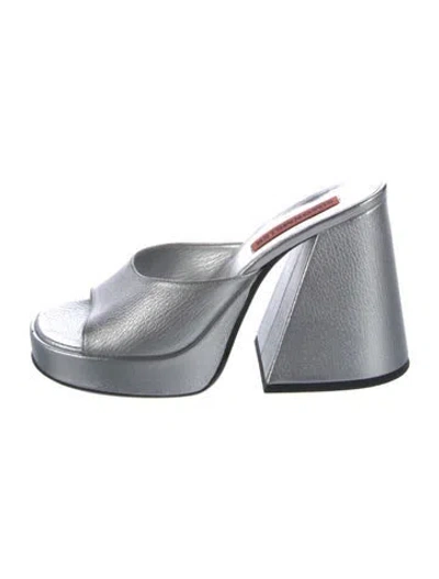 Simon Miller Leather Slides Silver Platform Unfortunately, due to restrictions, this item may not be eligible for shipping in all areas. | Simon Miller Leather Slides in Silver, Women's FR 39 | 8