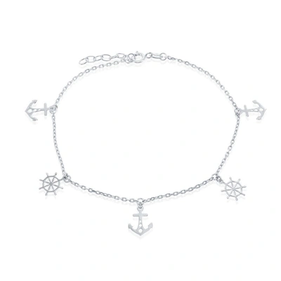 SIMONA Sterling Silver Alternating Anchor And Ship Wheel Anklet