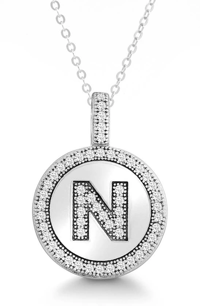 SIMONA Sterling Silver & Cubic Zirconia Micro Pavé Circle Initial Pendant Necklace In Silver-n