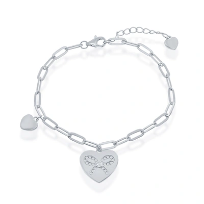 SIMONA Sterling Silver Heart With Cz Ribbon Paperclip Bracelet