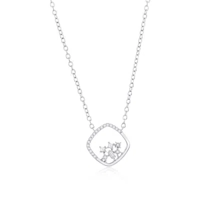 Sterling Silver, Multi-shaped Diamond Square Necklace