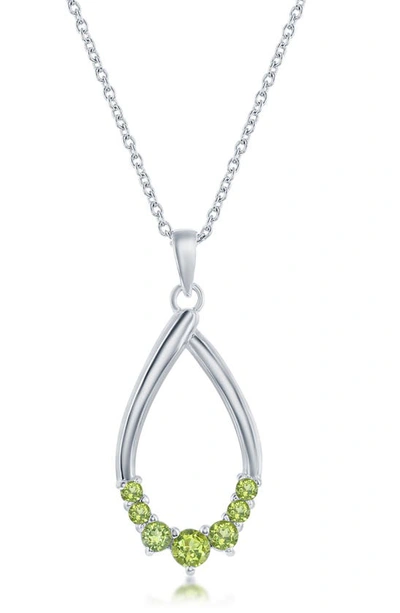 SIMONA Sterling Silver Pear Shaped Gemstone Necklace In Peridot