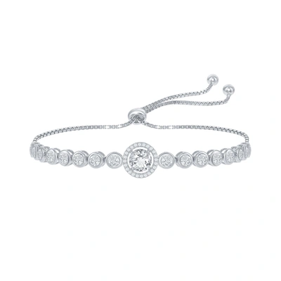 SIMONA Sterling Silver Round Cz Halo Bezel-set Cz Adjustable Bolo Bracelet