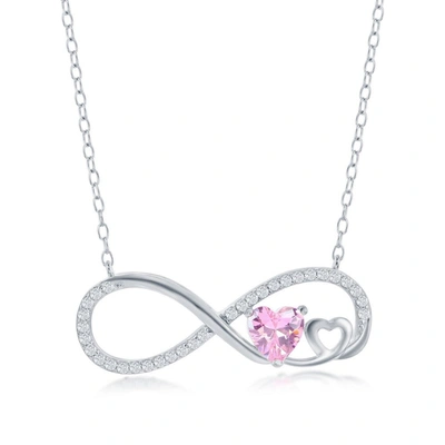 Sterling Silver Ruby Cz Heart Infinity Necklace In Pink