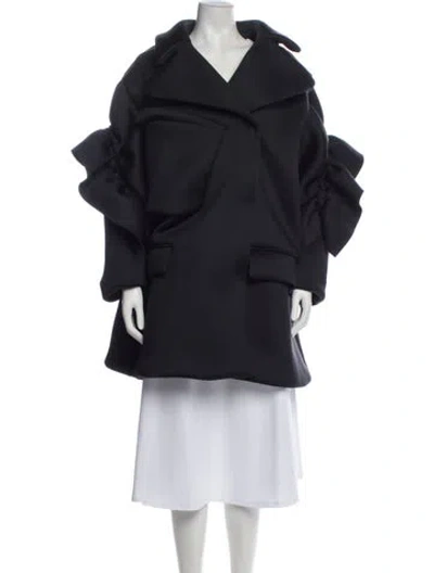 Simone Rocha Coat Black & Blue Ruffle Embellishment & Pointed Collar Short Flap Pockets & Snap Closure Fit: Coats by Simone Rocha typically fit true to size. | Simone Rocha Coat in Black/Blue, Women's US6, UK10 | M