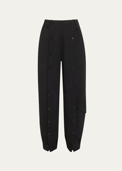 Front Button Placket Wool Trousers In Black