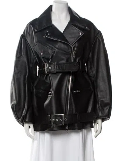 Simone Rocha Leather Jacket Black Pointed Collar Zip Pockets & Zip Closure Designer Fit: Jackets by Simone Rocha typically fit true to size. | Simone Rocha Leather Jacket in Black, Women's US6, UK10 | M