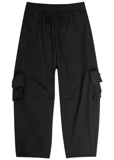 Info & Care Simone Rocha cotton-blend trousers Elasticated drawstring waist, side slip pockets, press-stud fastening flap pocket at sides and back Pull on 70% cotton, 30% polyamide; lining: 100% cotton Dry clean Size & Fit Inside leg length: 29 inches/ 73.5cm Midweight Wide, barrel-leg;cut Relaxed fit Model is 6'1"/ 185cm, chest size 38.5 inches and wears a size medium