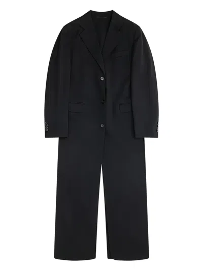 black button fastening back vent long sleeves notched lapels front flap pockets