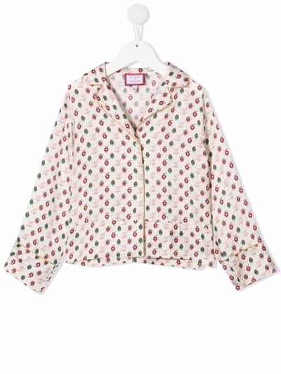 Cream/red/green embroidered button-down shirt from SIMONETTA featuring embroidered design, button fastening, classic lapels and long sleeves.