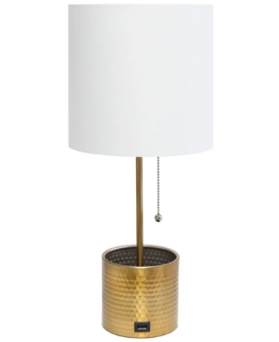 SIMPLE DESIGNS Hammered Metal Organizer Table Lamp With Usb Charging Port And Fabric Shade In Gold-tone