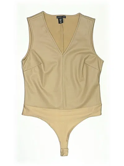 Sincerely Jules Bodysuit, Size: Medium. Item Details: Tan, Plunge Neckline, Sleeveless, Women's Tops, 100% Polyurethane