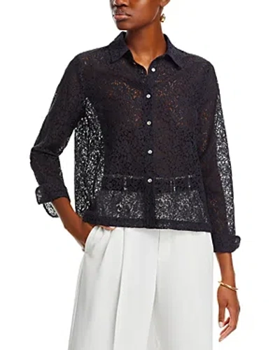 Button Front Lace Blouse In Black