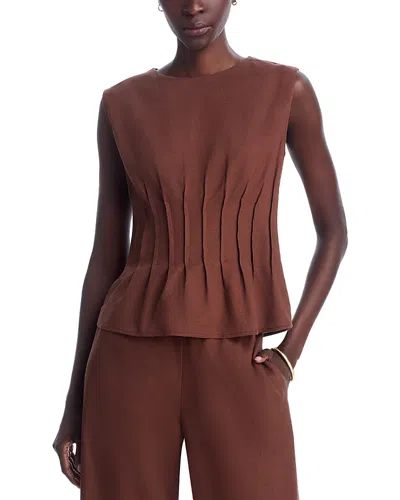 Single Thread Ruched Tank Top.Color:Cool Brown.Size:XL.Material:80% rayon/20% linen.Tops.