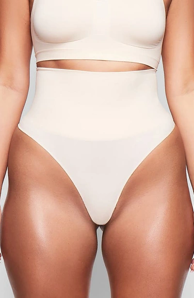 From Kim Kardashian West's SKIMS, this mid-rise thong that smoothes and tightly contours your core reflects the brand's passion for shapewear for every body. This everyday staple piece-with a supportive yet silky construction-enhances your body's natural shape and comes in nine different shades to complement your skintone. Style Name: Skims Core Control Thong (Regular & Plus Size). Style Number: 6016432.