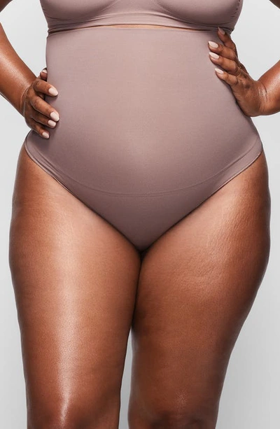 From Kim Kardashian West's SKIMS, this mid-rise thong that smoothes and tightly contours your core reflects the brand's passion for shapewear for every body. This everyday staple piece-with a supportive yet silky construction-enhances your body's natural shape and comes in nine different shades to complement your skintone. Style Name: Skims Core Control Thong (Regular & Plus Size). Style Number: 6016432.