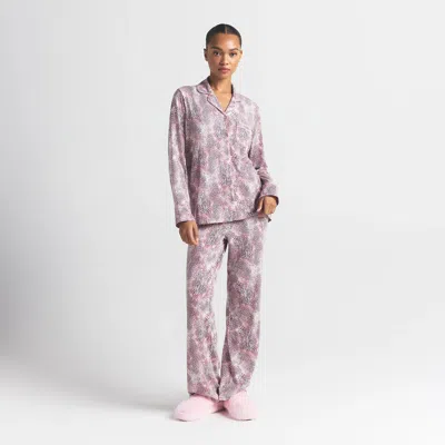 Your old pajamas can’t compete with this soft, ultra-comfortable sleep set. Features a slightly oversized button-up top with long sleeves, a chest pocket, and piping details. The straight leg pants have a relaxed fit and a stretchy waistband with an adjustable interior drawstring. Fits true to size. | SKIMS Sleep Long Sleeve Button Up Set | Bloom Mini Multi Animal | Pink | Skims Sleep | M | Medium | Women's