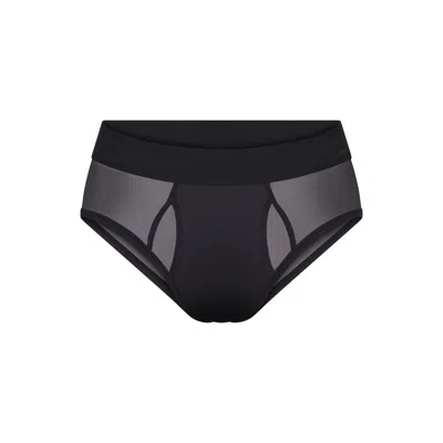 Designed in our lightweight, breathable sheer mesh, this boxer brief features a triple layer pouch for comfort and a functional fly opening. Complete with a textured waistband. | SKIMS Brief | Obsidian | Black | Mesh | 5X | 5X-Large | Men's