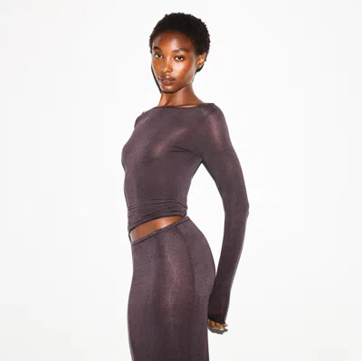 Your most elevated lounge top. Sheer with a fitted silhouette, this chic style keeps you comfortable with its incredibly soft and stretchy modal-cashmere fabric. Elevated with a wide boat neck and extra long sleeves. Wear with the Sheer Modal Straight Leg Pant to complete the set. Hits below the natural waist and fits true to size. XXS-XL 2X-4X Length 23" 24 1/2" | SKIMS Long Sleeve Boatneck Top | Phoenix | Deep Neutral | Sheer Modal | 4XL | 4X-Large | Plus Size | Women's
