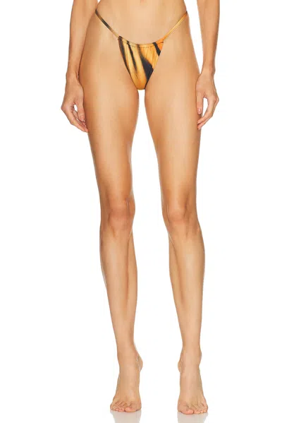 SKIMS X Cavalli String Bikini Bottom in Burnt Orange Self: 76% nylon 24% elastane Lining: 85% nylon 15% elastane. Hand wash cold. Brazilian back. Midweight jersey swimwear fabric. Item not sold as a set. SKMF-WX10. BB-BRF-8473WC. About the designer: