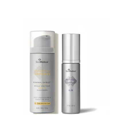 SkinMedica's Essential Defense Mineral Shield™ Broad-Spectrum SPF 35 provides advanced sun protection while improving the skin's tone and texture. Formulated especially for sensitive and post-procedure skin types, this sheer, lightweight, mineral sunscreen gives you the highest level of UVA protection available, along with UVB coverage to protect you from damaging rays. Green tea and caffeine help to calm, soothe and reduce redness and discoloration. SkinMedica's Age Defense Retinol Complex .25 is formulated to renew the skin's tone and texture without irritating the skin. Retinol helps combat the signs of premature aging while magnolia bark extract soothes inflammation. Ideal for use twice a week to build tolerance to formula.Key Ingredients:Retinol: smooths and refines skin's texture and enhances radiance. Caffeine: helps reduce inflammation and puffiness. Green Tea Extract: calms irritation, evens out discoloration and soothes redness