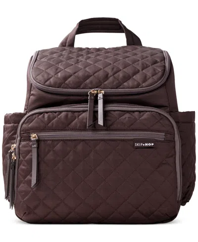 Skip Hop's lightweight, quilted diaper backpack offers hands-free ease and special packing cubes for baby's gear. The spacious interior fits everything from snacks to spare outfits and the extra wide opening makes it easy to pack and grab essentials in a pinch.