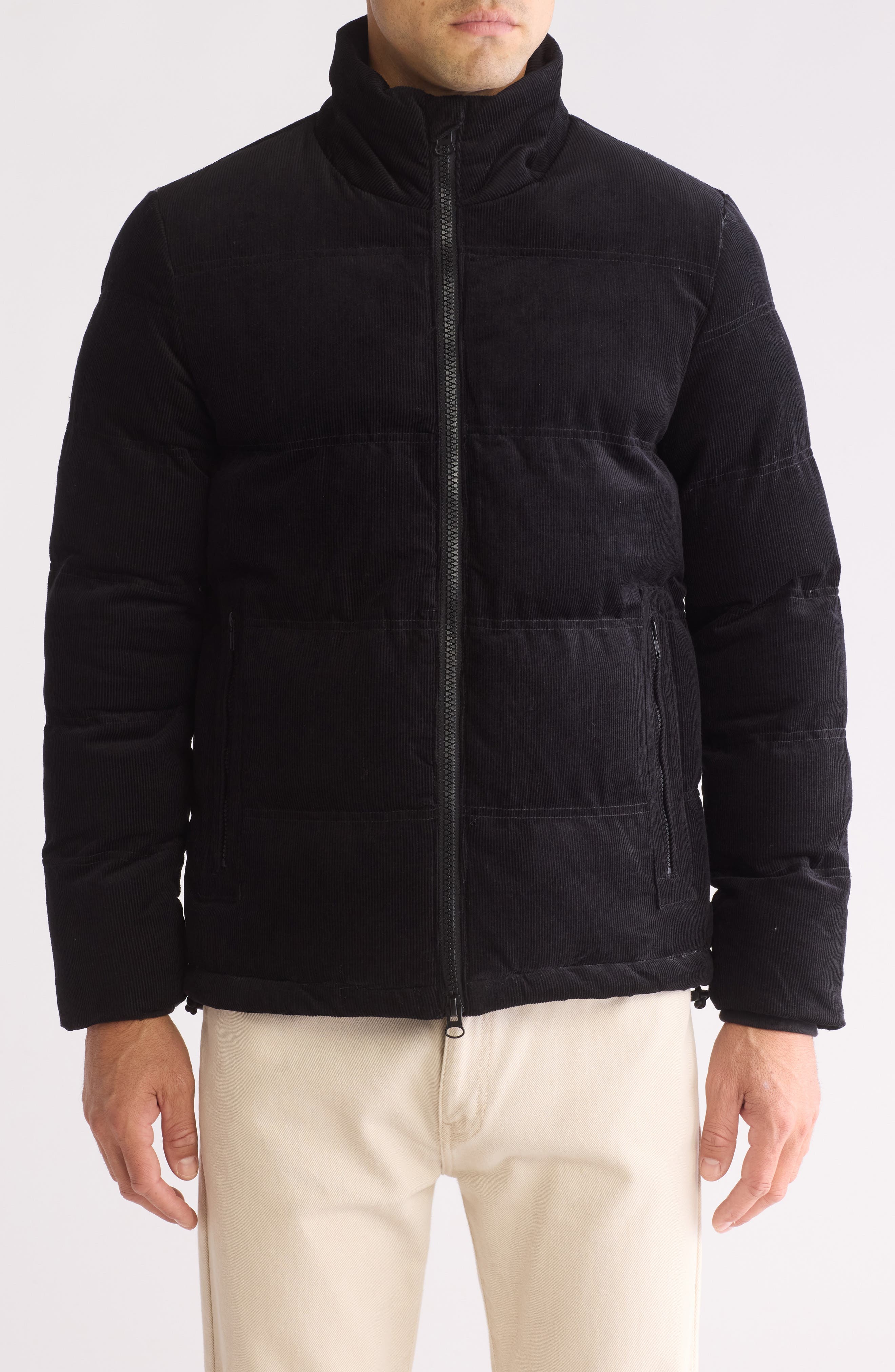 Introducing the Slate & Stone Corduroy Padded Puffer Jacket in Navy, a stylish and practical addition to your outerwear collection. This jacket features a quilted corduroy construction, two front zippered pockets, ribbed inner cuffs, and an inner drawcord at the hem for a customized fit. The lightweight design and 100% cotton material ensure comfort and ease of movement. The jacket also boasts a 100% polyester lining and fill for added warmth. With a zipper closure and a length of approximately 30 inches from shoulder to hem, this jacket combines style with functionality. Machine washable and imported, this Slate & Stone jacket is perfect for the modern man on the go. Model is 6'2 and is wearing a size medium. Measurements may vary slightly by size.