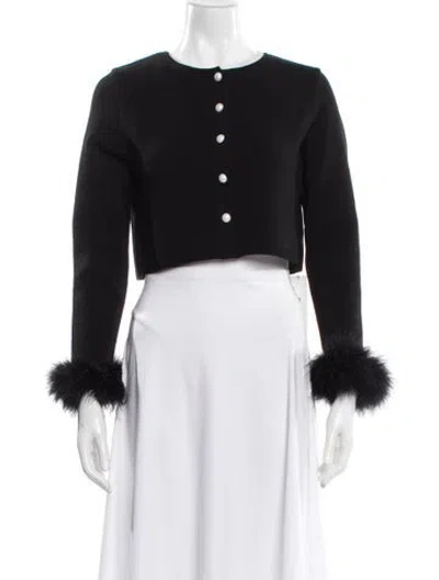 Sleeper Cropped Sweater Black Three-Quarter Sleeve with Crew Neck Fit: Knitwear by Sleeper typically fit true to size. | Sleeper Crew Neck Sweater in Black, Women's XS