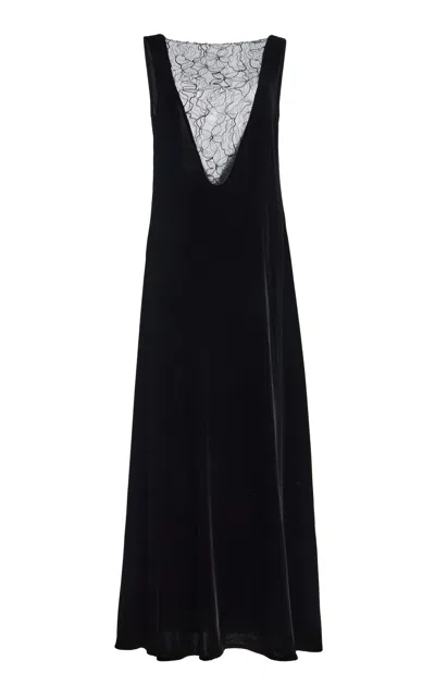 Founded in 2017 by Melbourne-based designer Jacqui Hoang; Sleeping with Jacques crafts luxury lounge and sleepwear that transitions beyond the bedroom.Constructed with a mix of floral lace and the label's signature velvet; this maxi features a body-skimming silhouette with a plunging neck and back.