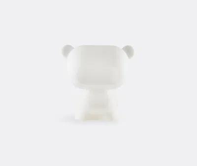 Designed by Lab81 for Slide, this bear-shaped lamp draws on the Toy Movement to merge functional designer lighting with the emotional and visual appeal of toys. Translating the teddy bear into a sculptural object, this three-dimensional figure is defined by soft color and lines, and a large, square-like head with rounded corners. Illuminated from within the upper part of the bear’s body, the light white version of the lamp emits a luminous, characterful glow. With its bold silhouette and video game aesthetic, 'Pure' brings a design-forward sense of play, comfort and nostalgia to spaces.
