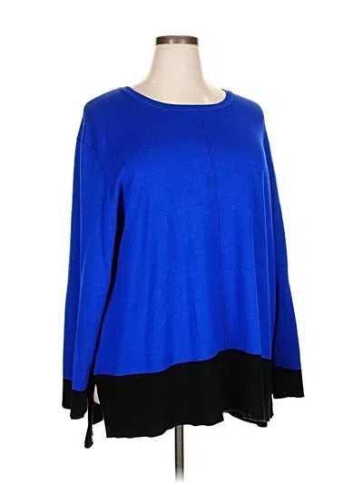 Slim Factor by Investments Pullover Sweater, Size: 3X. Item Details: Blue, Color Block Pattern, Scoop Neck, Long Sleeve, Peplum, Women's Tops, Rayon/Polyester