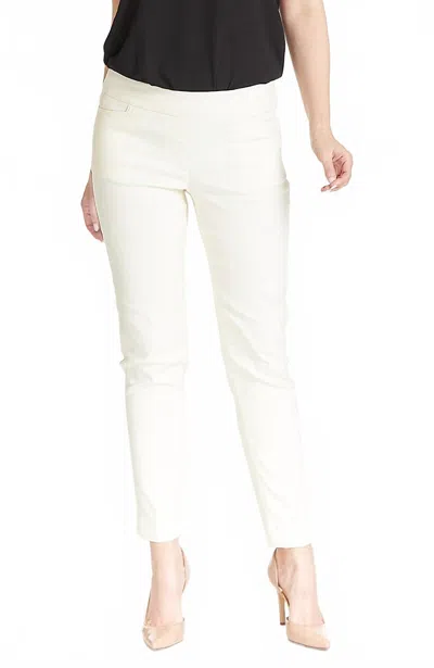 SLIMSATION BY MULTIPLES Pull On Twill Ankle Pants In Ivory In Multi