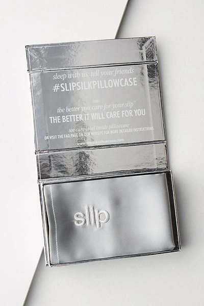 Slip pure silk products are made using their proprietary blend of silk called slipsilk. This luxurious, hypoallergenic sham protects delicate facial skin and hair from the scratches, creases, and tugs caused by standard cotton, reducing split ends. Additionally, their proprietary blend of silk is designed to absorb less face cream, which keeps your skincare products on your skin (where they belong)! Silk Pillowcase by Slip in Silver, Women's, Size: STANDARD at Anthropologie